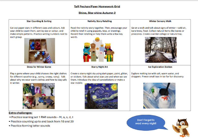 The homework grid below offers some suggestions for practical activities that your child may like to complete independently. These are linked to our current topic and your child may like to show the class what they have completed at the end of the half term.