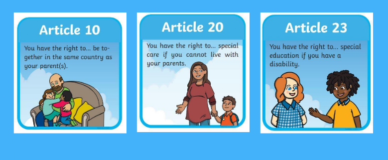 This term we will be focusing on Articles 10, 20 and 23 from the UN Convention on the Rights of the Child.