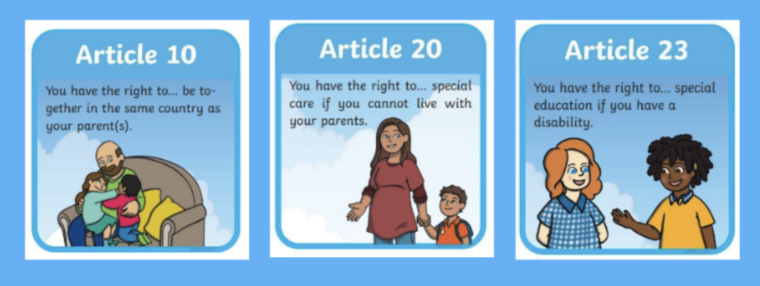 This half term we will be focusing on Articles 10, 20 and 23 from the UN Convention on the Rights of the Child.