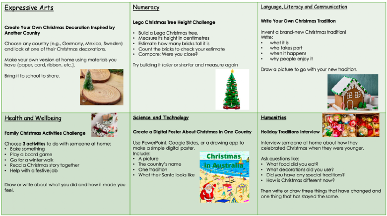 Termly homework – Choose at least one activity to complete by the end of each term – to present to the class.